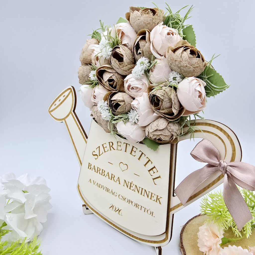 Ajándék óvó néninek, tanító néninek - selyemvirágokkal díszített egyedi feliratos öntözőkanna 12.