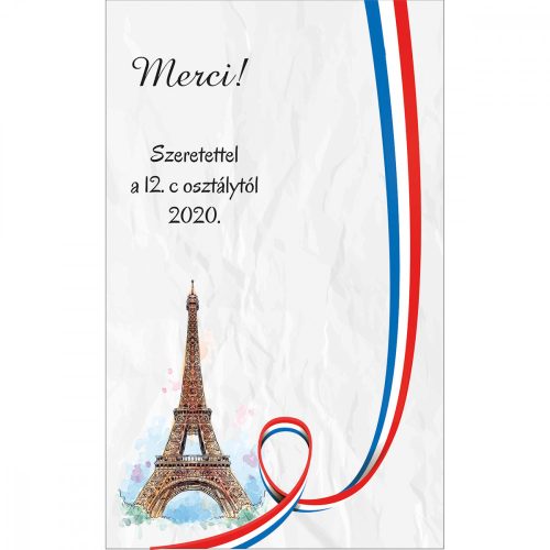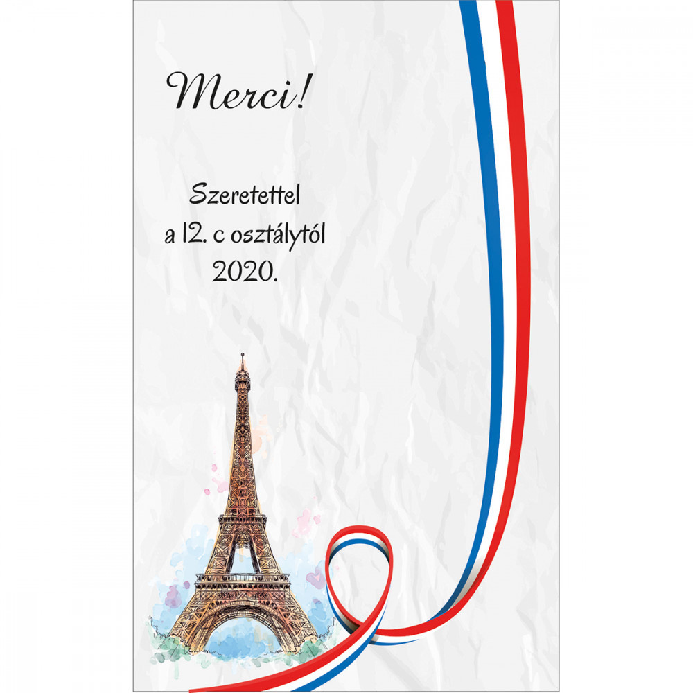 • Alap felirat: „Merci!” – de rövid, egyedi szövegre is cserélhető, ha az elfér a grafikával.