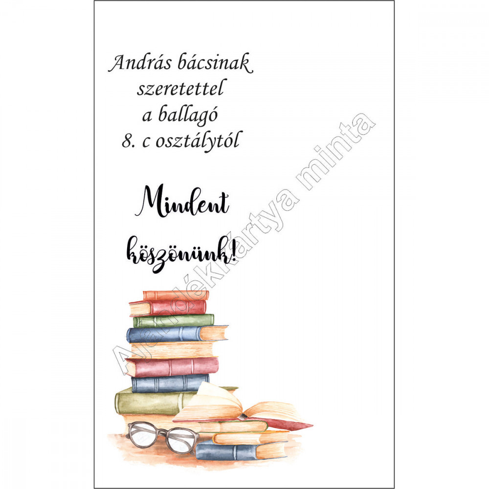 Ajándékkártya tanároknak könyvjelzőhöz és kulcstartóhoz! Ha egy könyvjelzőhöz vagy kulcstartóhoz vásárolod, celofántasakos díszcsomagolásban küldjük. A „Mindent köszönünk!” felirat módosítható, személyes üzenettel is kérhető.