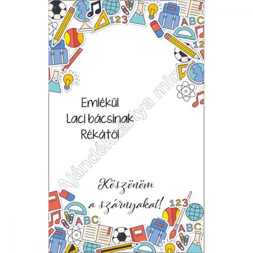 Ajándékkártya tanároknak könyvjelzőhöz és kulcstartóhoz! Ha egy könyvjelzőhöz vagy kulcstartóhoz vásárolod, celofántasakos díszcsomagolásban küldjük. A „Köszönöm a szárnyakat!” felirat módosítható, személyes üzenettel is kérhető.