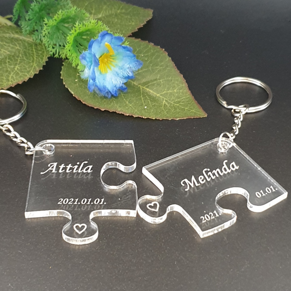 Páros puzzle kulcstartó egyedi nevekkel és dátummal – Akrilüvegből