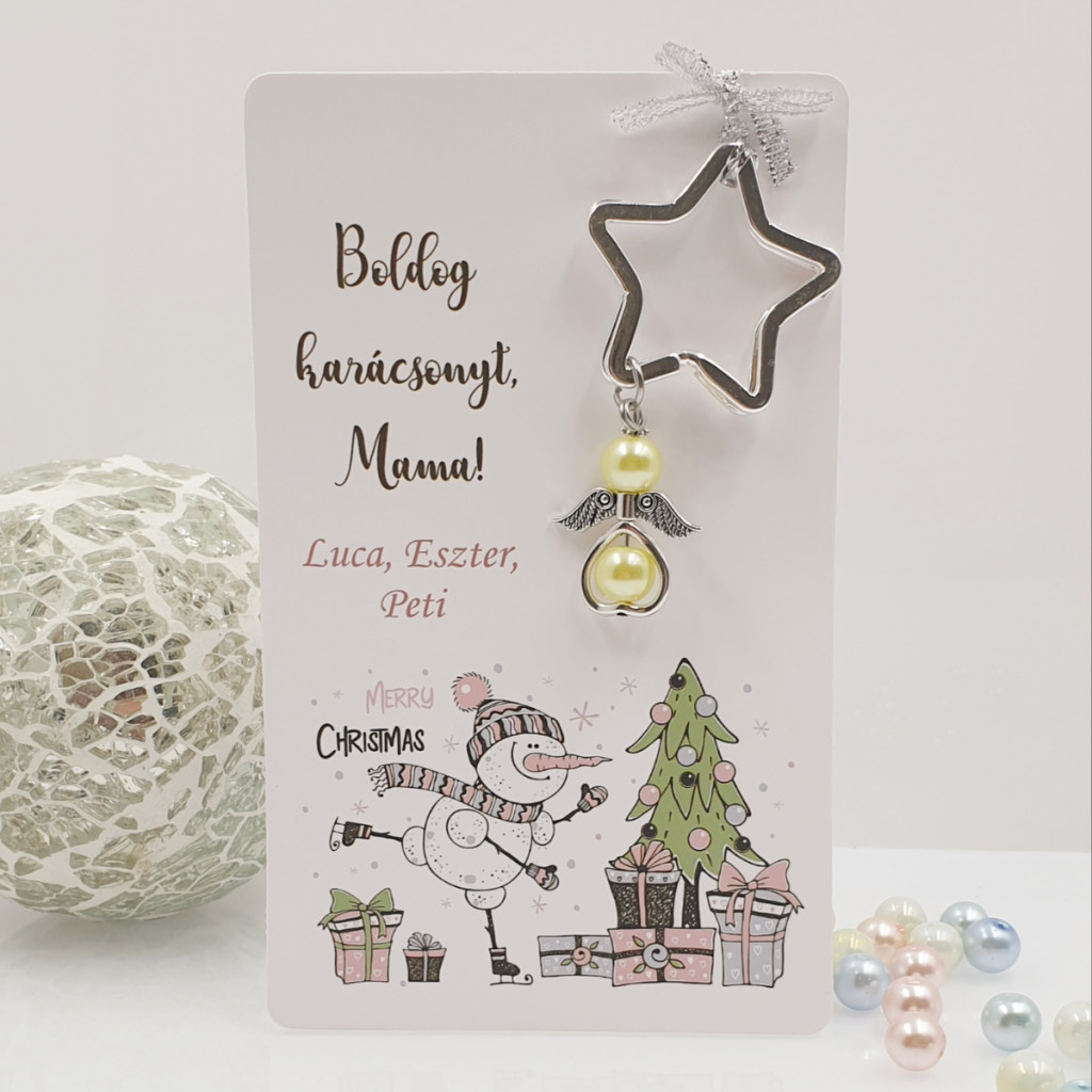 Angyalkás csillag kulcstartó karácsonyi ajándékkártyán - 1.