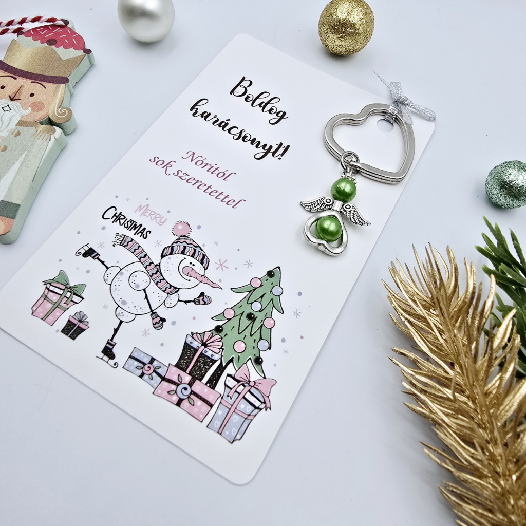 Angyalkás szív kulcstartó karácsonyi ajándékkártyán - 1.
