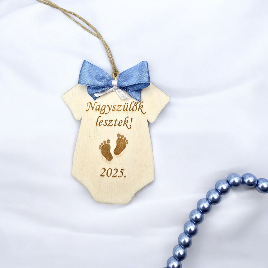 • Egyedi feliratos, body formájú gravírozott karácsonyfadísz: a gravírozás teljesen személyre szabható – írhatod rá a baba bejelentését, nevet, dátumot vagy bármilyen kedves üzenetet.