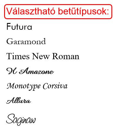 • Kérjük, a rendelési mezőkben írd be pontosan a kívánt szöveget a kosárba tétel előtt.