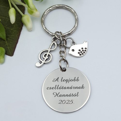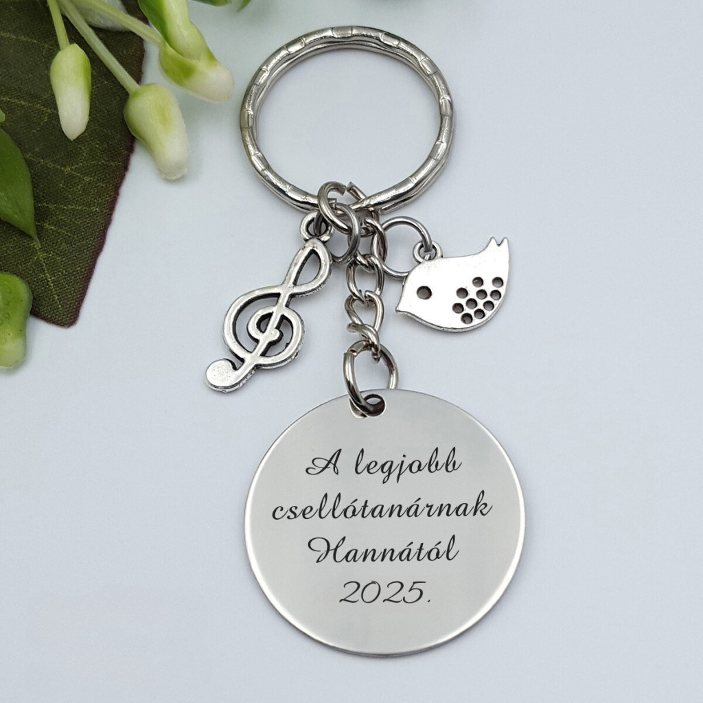 Egyedi, gravírozott kulcstartó csellótanároknak – tökéletes ajándék tanév végére, vagy pedagógusnapra!