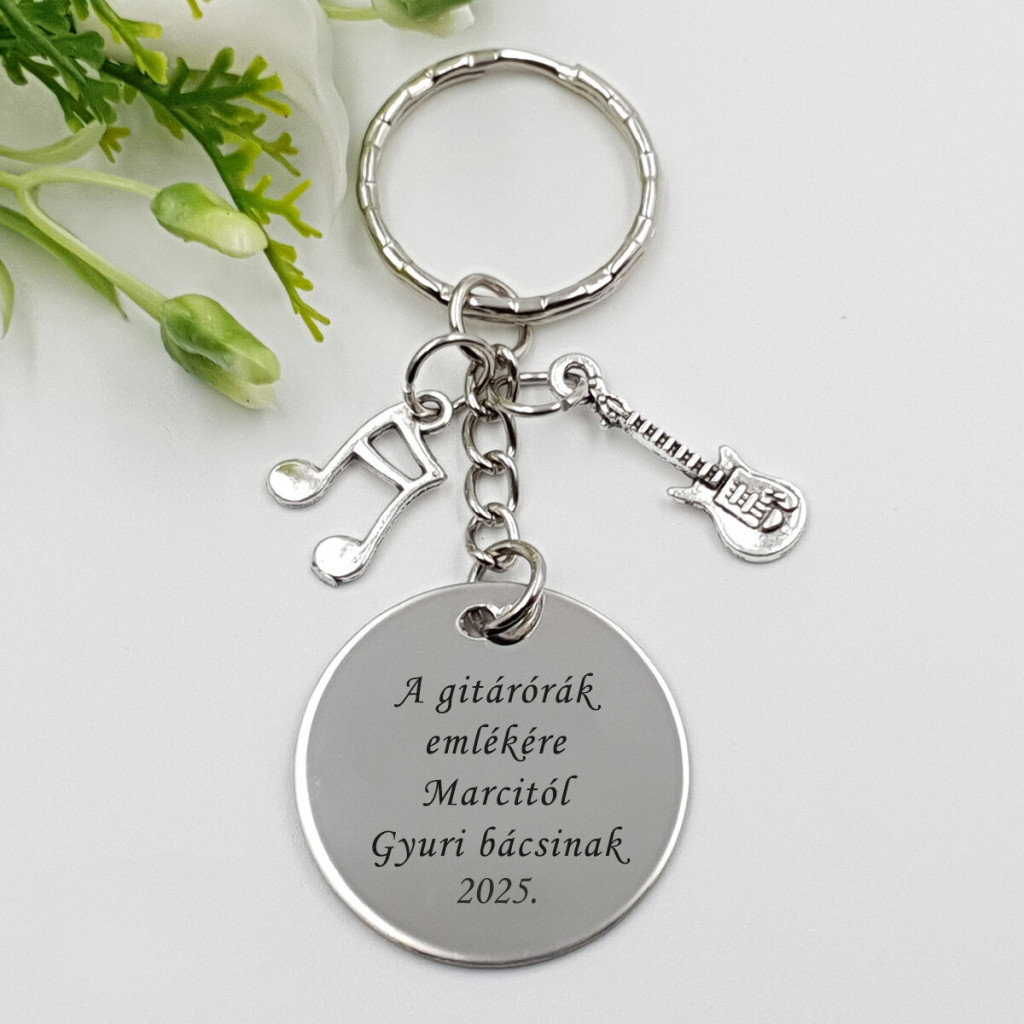 Egyedi, gravírozott kulcstartó gitártanároknak – tökéletes ajándék tanév végére, vagy pedagógusnapra!