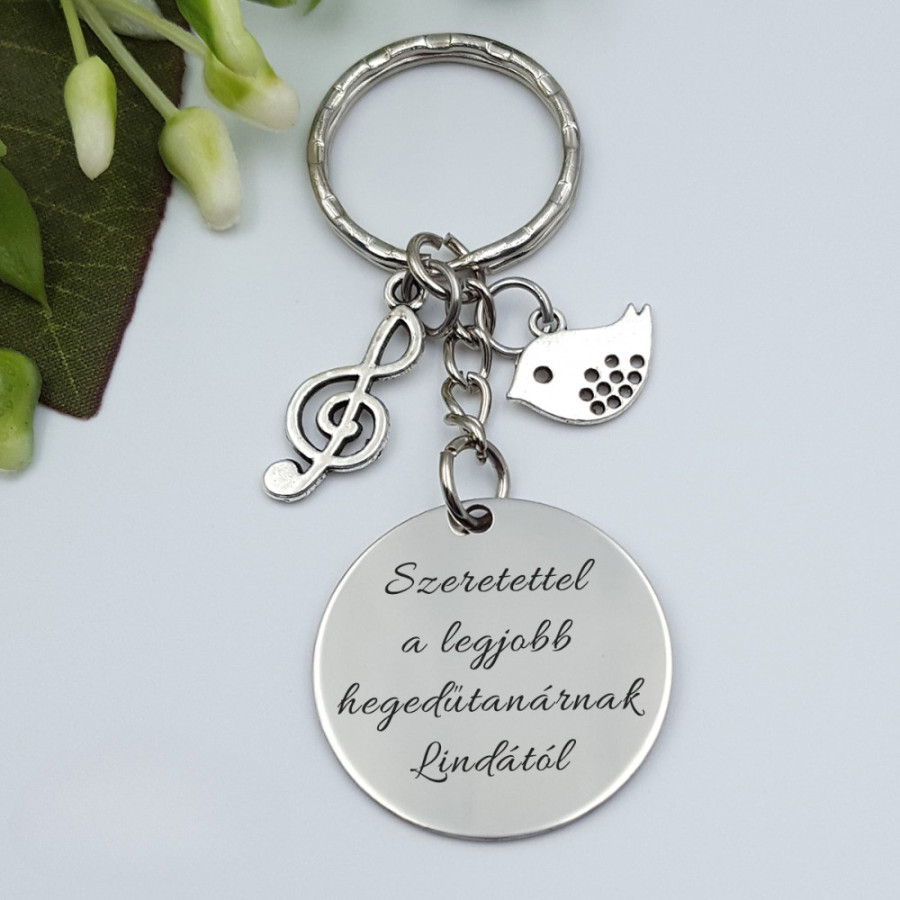 Egyedi, gravírozott kulcstartó hegedűtanároknak – tökéletes ajándék tanév végére, vagy pedagógusnapra!