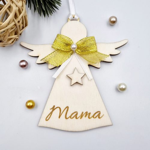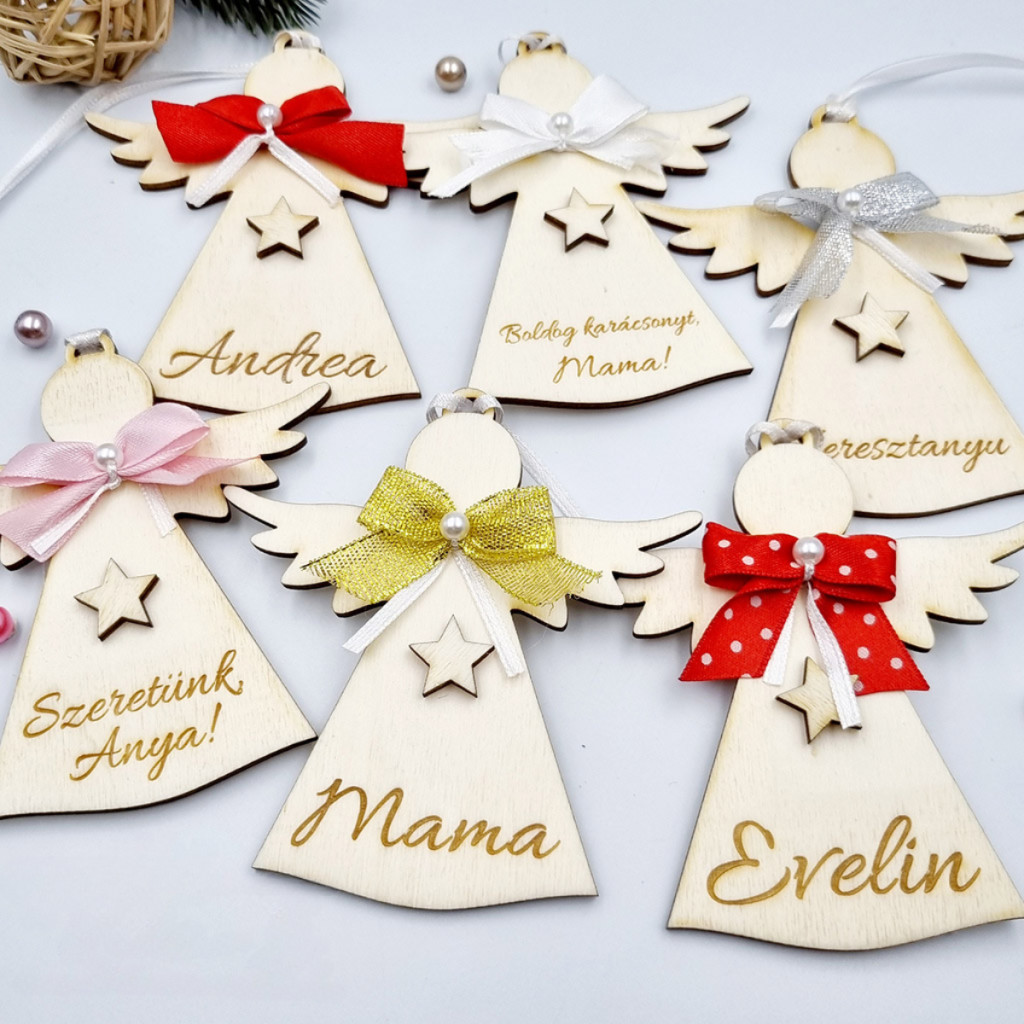 Ez a gravírozott fa karácsonyfadísz angyalka grafikával készül, amelyre az általad kért név kerül. Egyedi kivitelezése miatt szívhez szóló és különleges ajándék lehet karácsonyra.