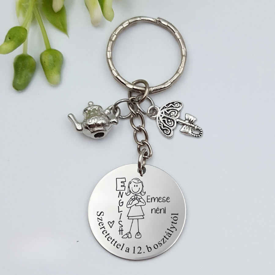 Egyedi, gravírozott kulcstartó angoltanárnőknek – a tökéletes ajándék pedagógusnapra, ballagásra vagy évzáróra