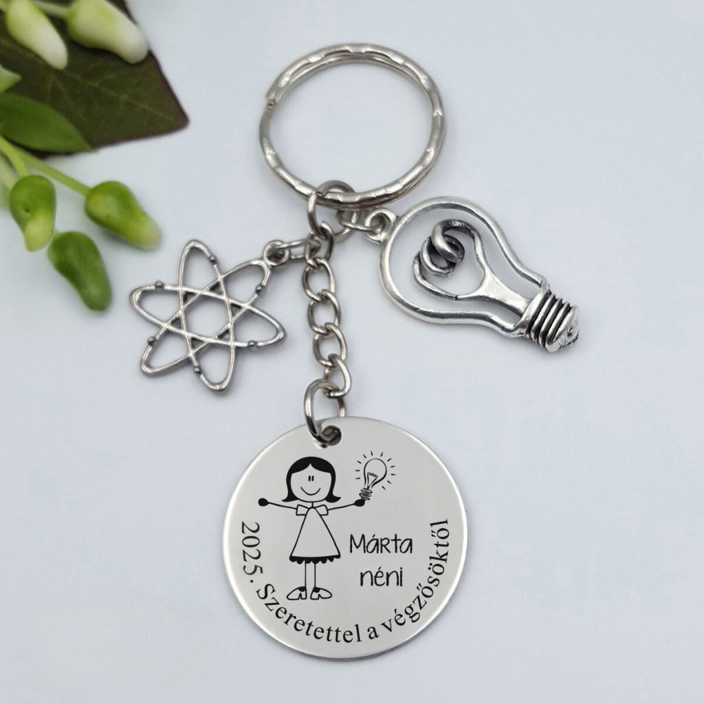 Egyedi, gravírozott kulcstartó fizikatanárnőknek – a tökéletes ajándék pedagógusnapra, ballagásra vagy évzáróra
