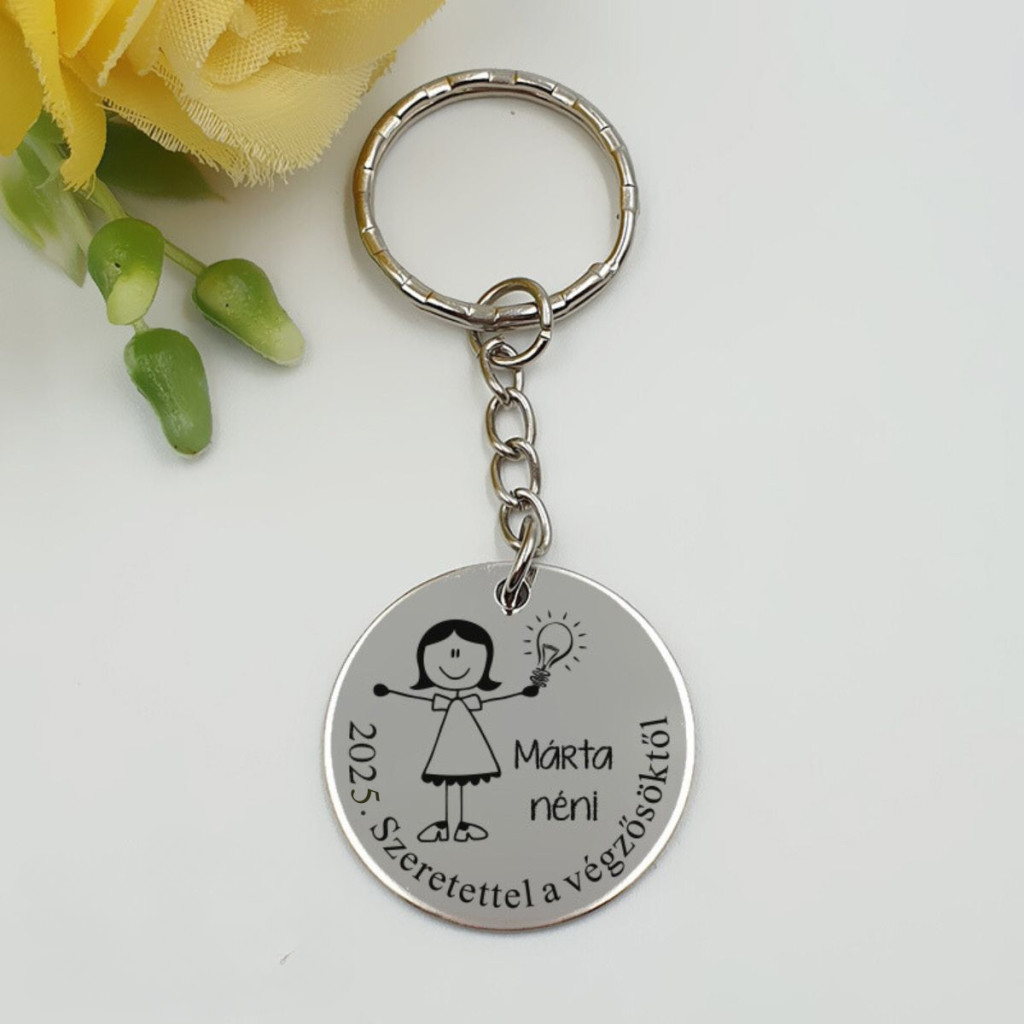 Egyedi névvel, saját felirattal kérhető kulcstartó, mely tökéletes ajándék év végére, ballagásra vagy pedagógusnapra
