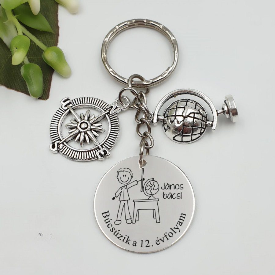 Egyedi, gravírozott kulcstartó földrajztanároknak – a tökéletes ajándék pedagógusnapra, ballagásra vagy évzáróra