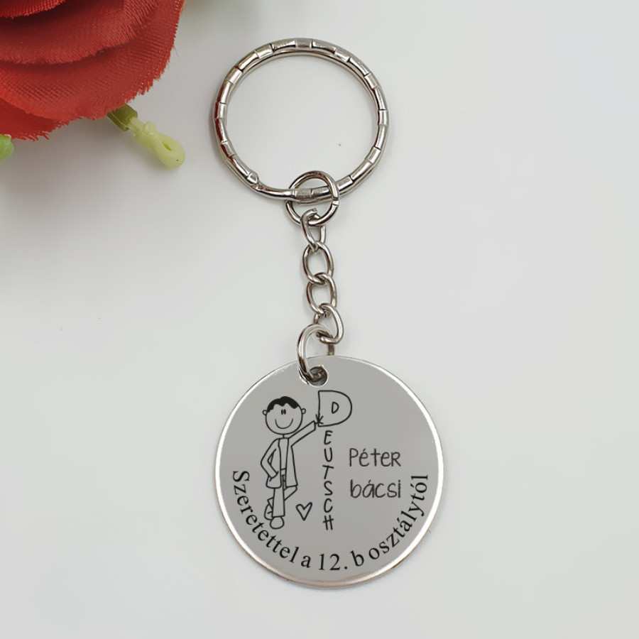 Egyedi, gravírozott kulcstartó némettanároknak – tökéletes ajándék tanév végére, ballagásra vagy pedagógusnapra!