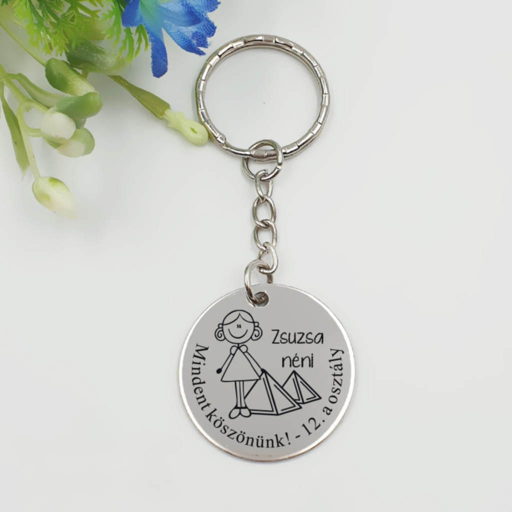 Egyedi névvel, saját felirattal kérhető kulcstartó, mely tökéletes ajándék év végére, ballagásra vagy pedagógusnapra