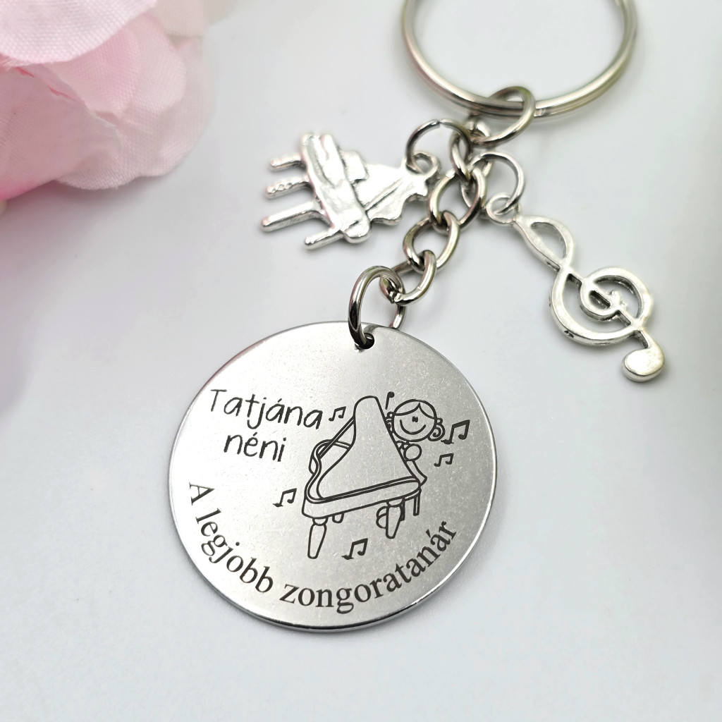 Egyedi, gravírozott kulcstartó zongoratanároknak – a tökéletes ajándék pedagógusnapra, ballagásra vagy évzáróra