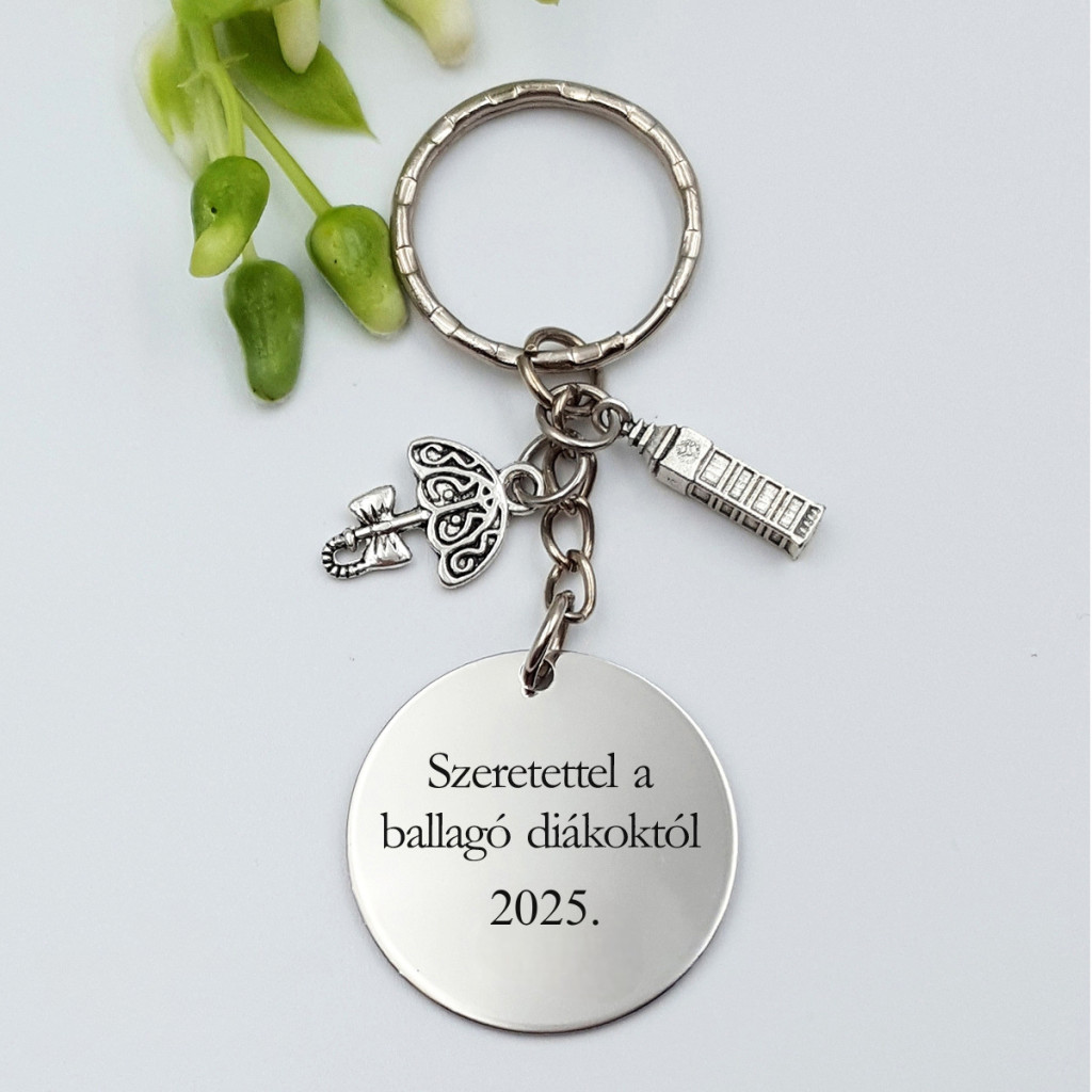 Saját felirattal kérhető kulcstartó, mely tökéletes ajándék év végére, ballagásra vagy pedagógusnapra