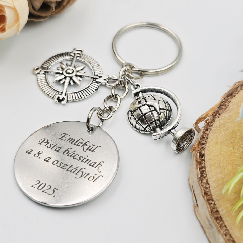 Egyedi, gravírozott kulcstartó földrajztanároknak – tökéletes ajándék tanév végére, ballagásra vagy pedagógusnapra!