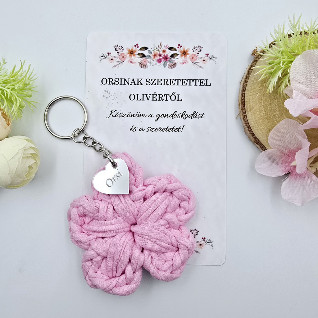 Horgolt virág kulcstartó gravírozott medállal, egyedi ajándékkártyán - 7 (több szín)