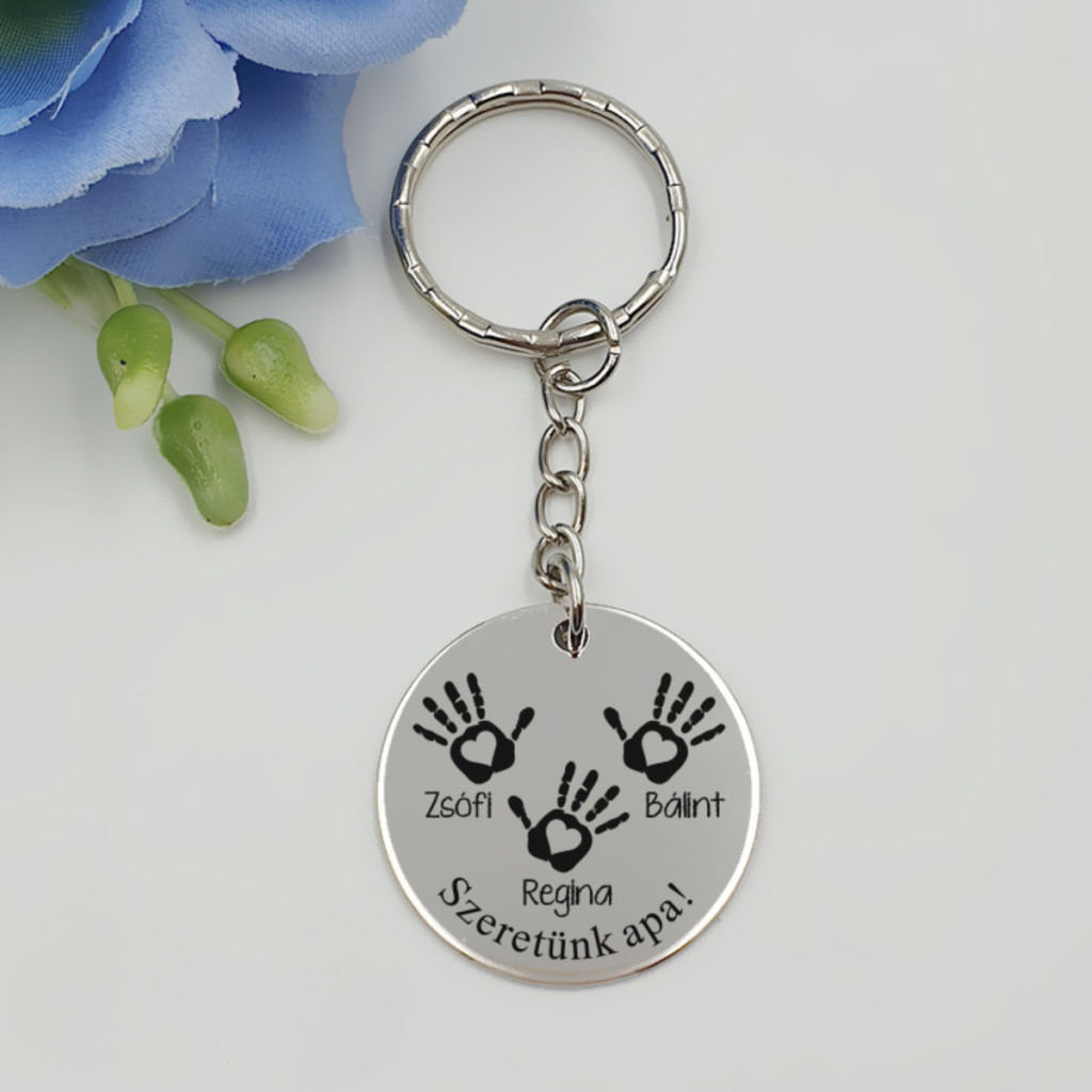 "Kis tenyerem" - kulcstartó 3 gyermek nevével gravírozva