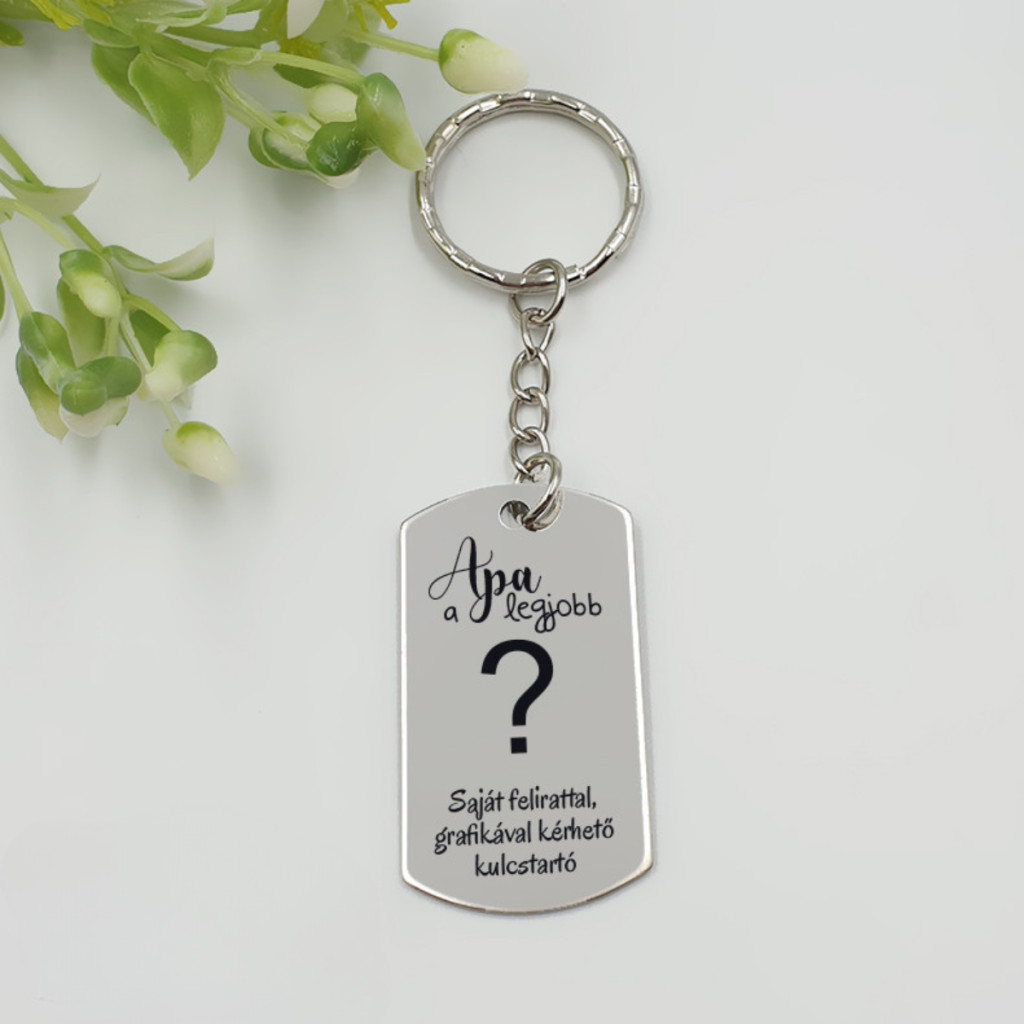 "Apa a legjobb" kulcstartó – egyedi gravírozással! Tervezd meg saját kulcstartódat! Az "Apa a legjobb..." felirat folytatását és az alsó egyedi szöveget is te határozhatod meg. Hátoldal gravírozás is kérhető!