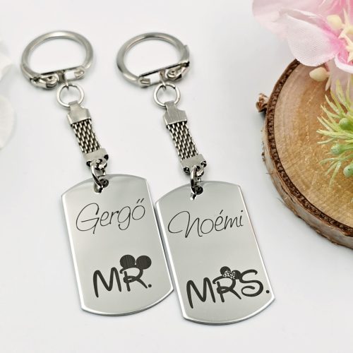 Páros kulcstartó gravírozott nevekkel és grafikával – Egyedi ajándék szerelmeseknek