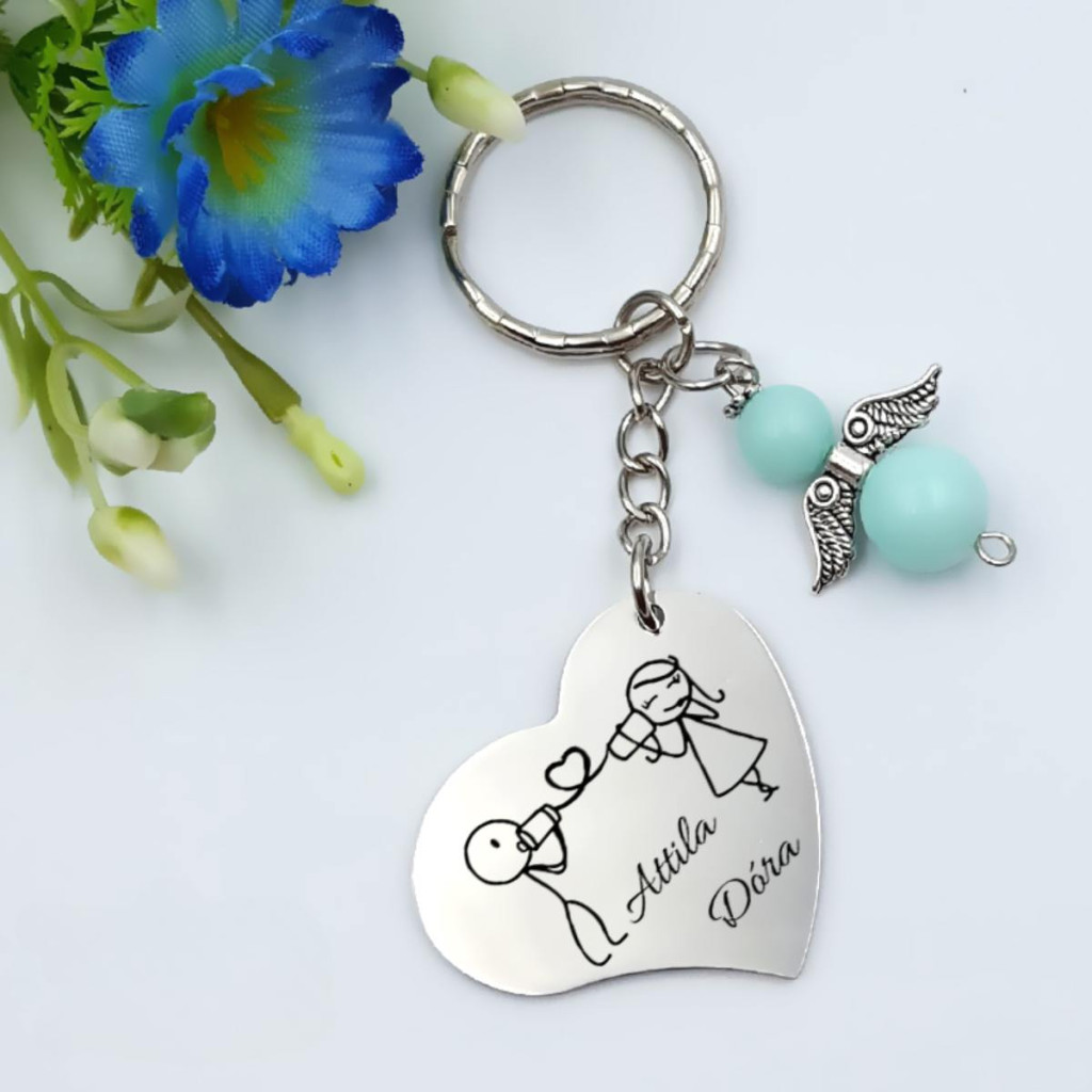 • Személyre szabott gravírozás – A kulcstartóra a saját neveitek kerülnek, így egyedi és személyes lesz.