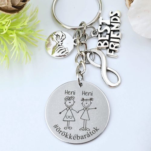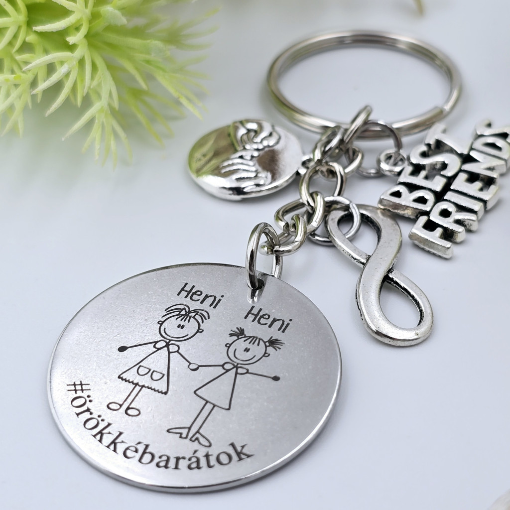Ajándék barátnőnek - barátnők kulcstartó grafikával, egyedi névvel, felirattal