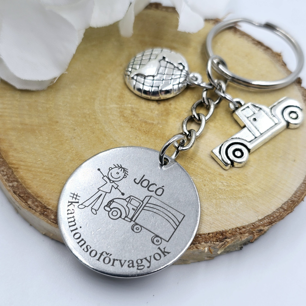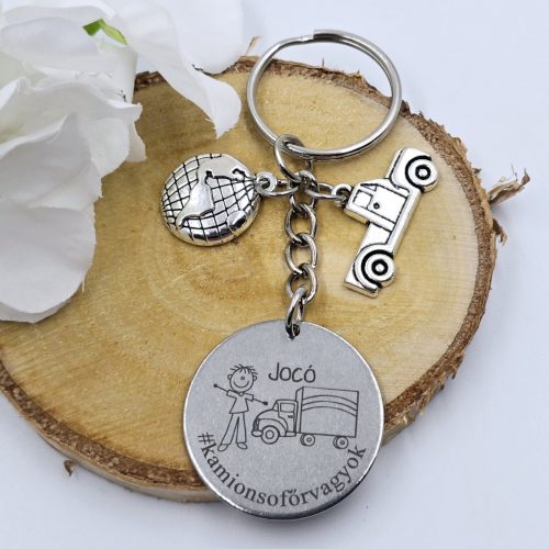 Gravírozott kulcstartó egyedi névvel. Tökéletes ajándék egy kamionsofőrnek.