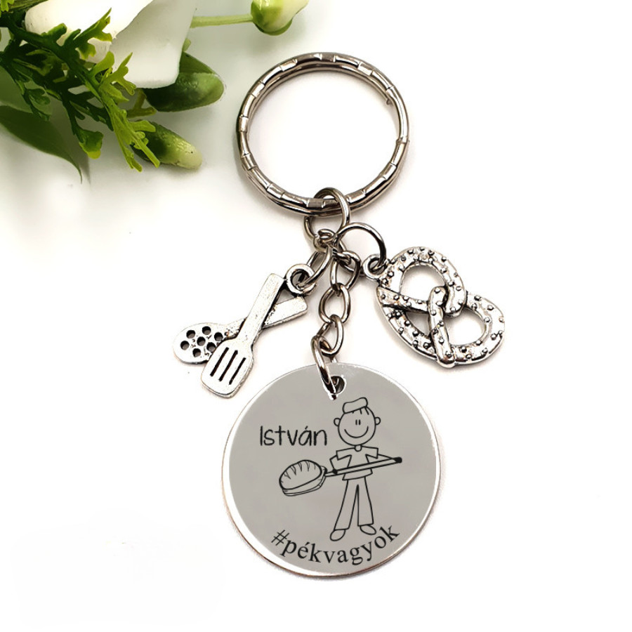 Egyedi gravírozott ajándék - pék kulcstartó