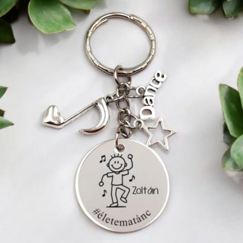 Ajándék táncosoknak - táncos kulcstartó grafikával, egyedi névvel, felirattal