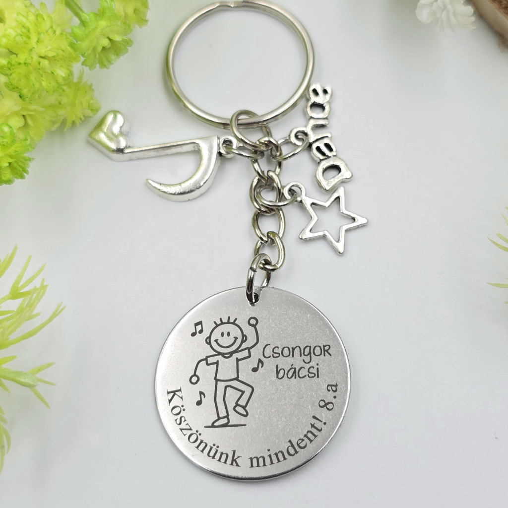 • 1 db gravírozott, 3 cm-es nemesacél körmedálos kulcstartó