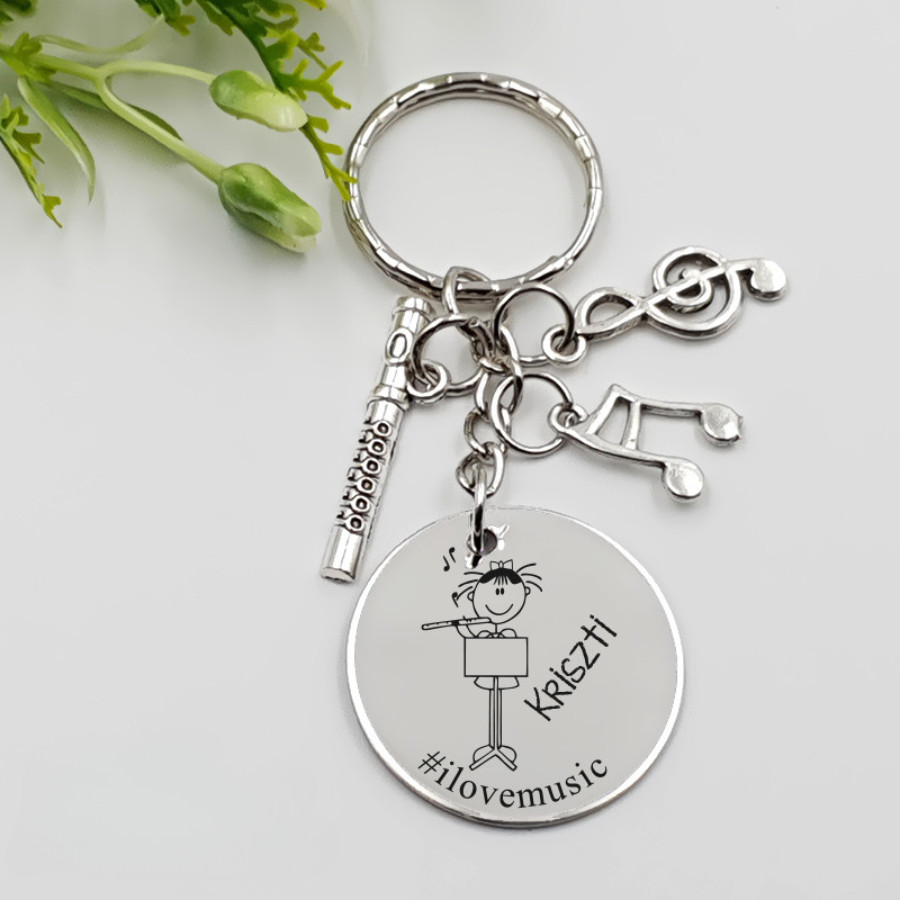 Egyedi gravírozott ajándék - zenésznő kulcstartó